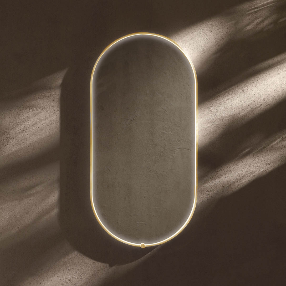 - Avior oval 45w x 90h illuminated steamfree mirror brushed brass