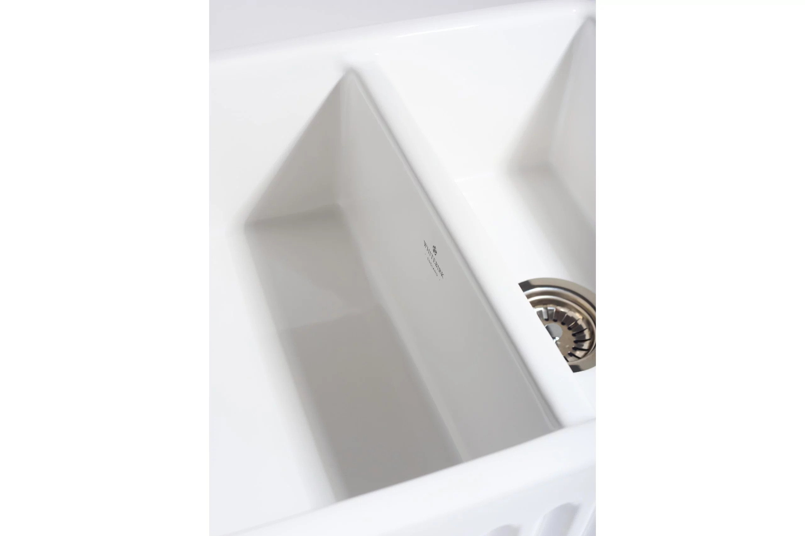 - Double bowl sink with offset dividing wall