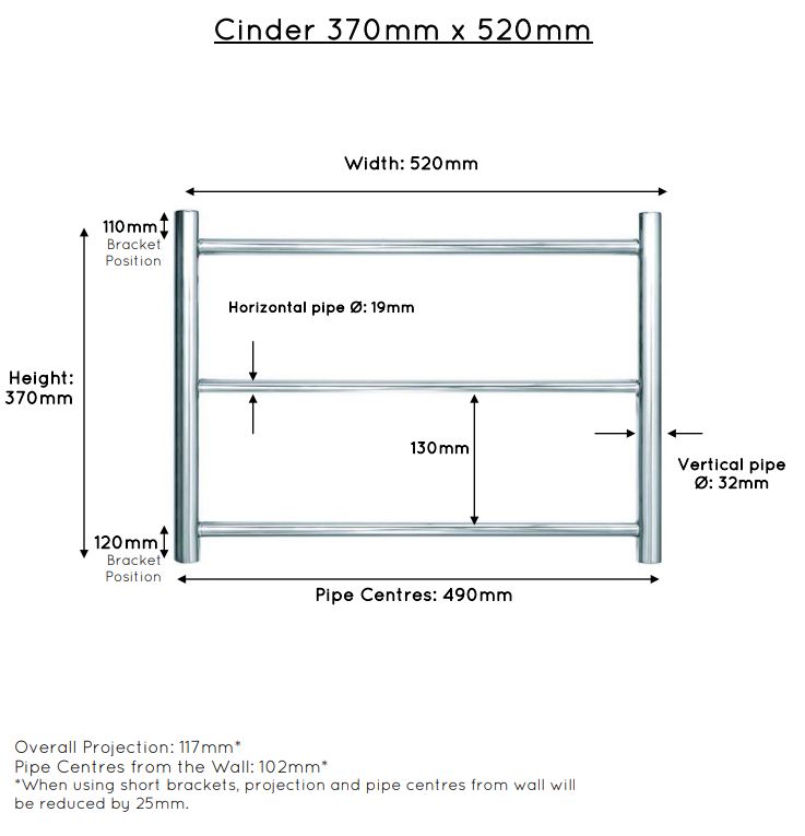 Crafted from 100% stainless steel, and finished by hand, the Cinder, part of the Sussex towel rail range, is designed to last a lifetime. All of these rails can replace the existing radiator in the bathroom and provide a stunning modern look with plenty of space to dry and warm towels. Each rail is manufactured with standard 1/2” BSP tappings and is pressure tested to 12 Bar. These rails are suitable for all plumbing systems including open systems. BTU/Watt figures are based on T=60K.