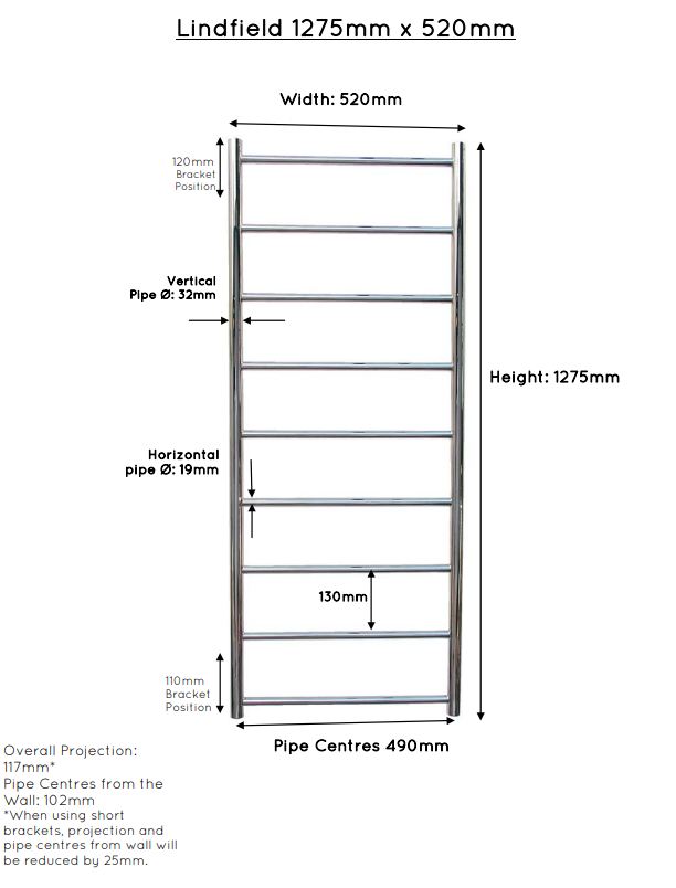 Crafted from 100% stainless steel, and finished by hand, the Lindfield, part of the Sussex towel rail range, is designed to last a lifetime. All of these rails can replace the existing radiator in the bathroom and provide a stunning modern look with plenty of space to dry and warm towels. Each rail is manufactured with standard 1/2” BSP tappings and is pressure tested to 12 Bar. These rails are suitable for all plumbing systems including open systems. BTU/Watt figures are based on T=60K.