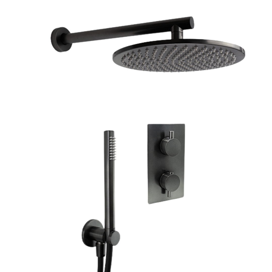 - Linea Complete Dual Outlet Shower Kit with 250mm Showerhead -Satin Gunmetal