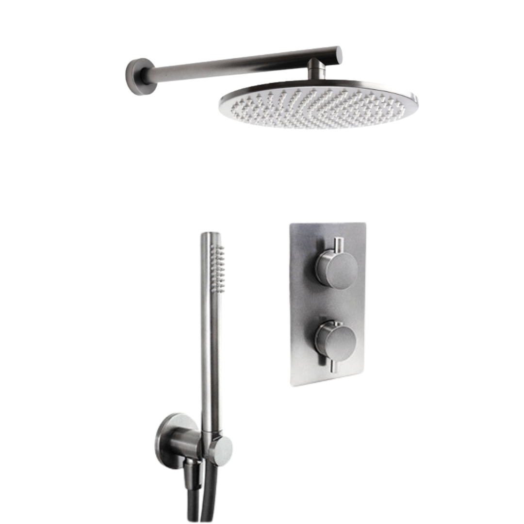 - Linea Complete Dual Outlet Shower Kit with 250mm Showerhead -Satin Steel