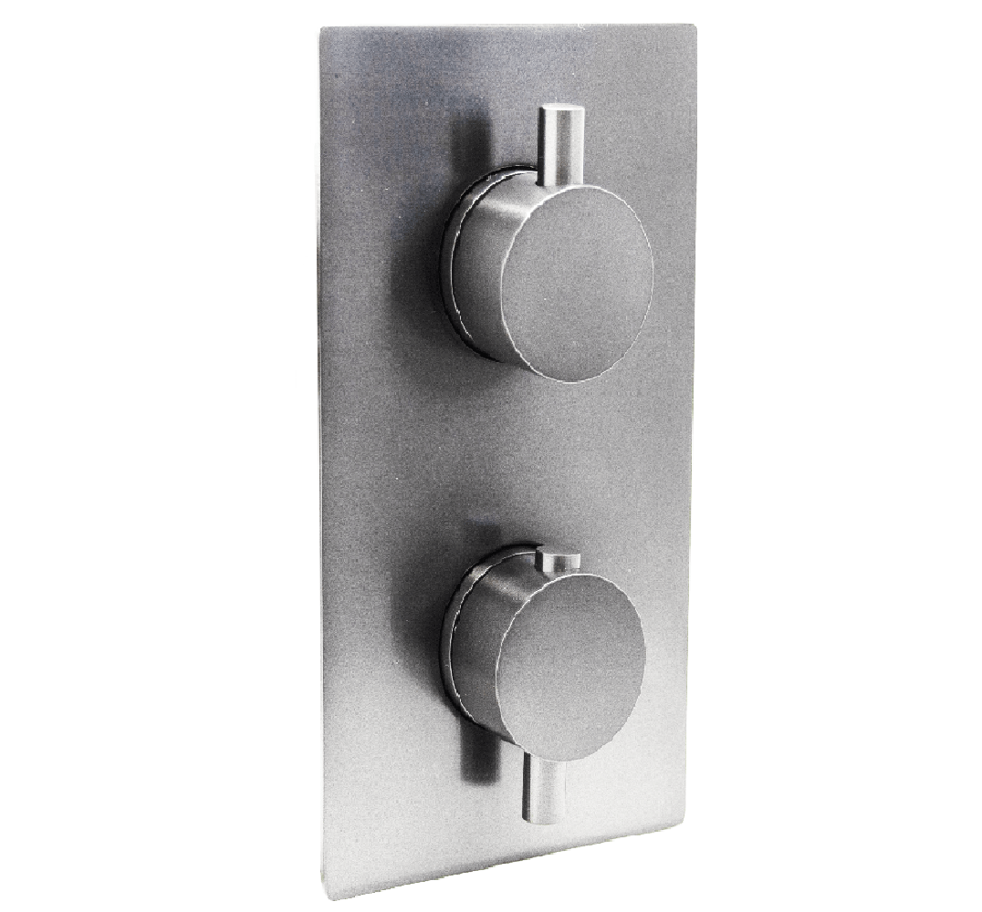 The Linea by Tap Shop The 1 Outlet 2 Handle Thermostatic Shower Valve delivers a single outlet configuration — making it ideal for a simple shower setup. It incorporates a thermostatic cartridge to maintain a consistent water temperature and avoid scalding or sudden cold surges. The design features two separate controls (one for flow, one for temperature) and a brass body with a satin steel finish for durability and aesthetics. Minimum operating pressure and installation depth should be checked to ensure compatibility in your bathroom.