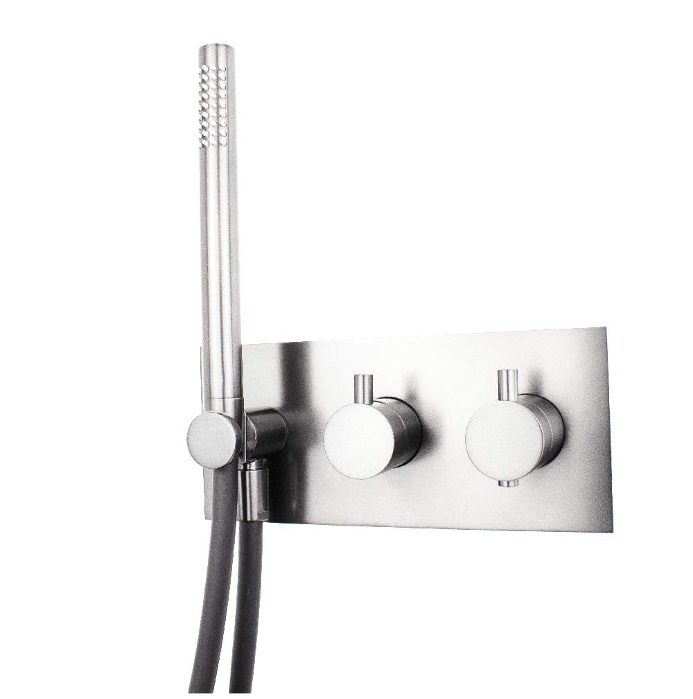 - Linea Wall Mounted 2 Outlet Thermo Bath Shower Mixer - Satin Steel